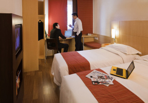 В номере: Хорошо обустроенные номера в Ibis Sanyuan имеют стильный декор и деревянный пол. Они имеют ЖК-телевизор, рабочий стол и тапочки. Проводной доступ в Интернет предоставляется в номерах отеля. Пользование Интернетом - бесплатно.