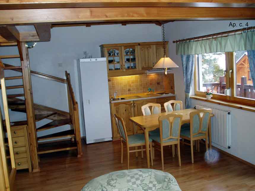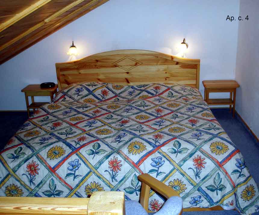 АРТ A2 расположен на втором этаже. Адаптирован для инвалидов. Апартамент состоит из гостиной с диваном, столовой с полностью оборудованной кухней, спальни с двумя отдельными кроватями, которые могут быть сдвинуты, балкон, сушилка для одежды, ванная комната с туалетом. Из окон этого номера открывается восхитительный вид на горы. АРТ A3 состоит из двух этажей, вход со второго этажа гостиницы. На нижнем этаже есть небольшая гостиная с диваном, столовая с полностью оборудованной кухней, ванная с туалетом. Верхний этаж состоит из уютной спальни-мансарды с двухспальной кроватью. АРТ A4 состоит из двух этажей, вход со второго этажа гостиницы. На нижнем этаже большая гостиная комната с диваном, столовая с полностью оборудованой кухней, сушка для одежды, южный балкон и ванная комната с большой угловой ванной и туалетом. Верхний этаж состоит из двух уютных спален, одна с двухместной кроватью и другая с одной кроватью. АРТ A5 расположен на втором этаже и состоит из гостиной с диваном, столовой с полностью оборудованной кухней, есть балкон, выходящий на юго-запад, спальни с двойной кроватью для двух человек и ванная комната с туалетом. АРТ A6 расположен на втором этаже и состоит из небольшой гостиной с диваном, столовой, полностью оборудованной кухни, балкона с видом на горы, романтической спальни с двойной кроватью и стеклянной облицовкой стен, ванной комнаты с большой угловой ванной и отдельного туалета. Кроме того в номере есть сушка для одежды. АРТ A7 расположен на третьем этаже и состоит из гостиной с диваном, полностью оборудованной кухнеи, балкона на юго-запад, спальни с двухспальной кроватью, ванной комнатоы с большой угловой ванной и отдельным туалетом. АРТ A8 находится на четвертом этаже, но вход в него с третьего этажа. Эта уютная квартира состоит из гостиной с диваном, столовой с полностью оборудованной кухней, двух спален (одна с двумя раздельными кроватями и другая с двуспальной кроватью), балкона, ванной комнаты с большой угловой ванной и отдельного туалета. АРТ A9 - это большая роскошная квартира в два этажа со входом с третьего этажа отеля. Нижний этаж состоит из большой гостиной с камином и диваном, полностью оборудованной кухни и столовой со стеклянной стеной на сторону леса, большого балкона с фантастическим видом на горы, спальни с двуспальной кроватью, ванной комнаты с джакузи, отдельного туалета и сушки для одежды. Мансардный этаж состоит из трех уютных спален, две с раздельными кроватями и третья с двуспальной кроватью, большой угловой ванной комнатой с джакузи, душем, отдельным туалетом. Инфраструктура отеля:- конференц-зал на 25 человек (всю необходимую технику можно взять в аренду);- гараж; - магазин. Сервисы:- охраняемая парковка;- прокат лыж;- прокат велосипедов. Развлечения и спорт:- фитнесс-центр;- сауна. Для детей:- детская площадка;- игровой уголок рядом с рестораном;- детское меню;- детские стулья в ресторане. Рестораны, бары:- ресторан на 50 человек (в летнее время можно обедать в саду).
