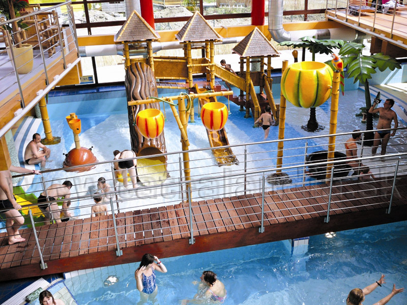 Аквапарк пропонує проживання і в 155 апратаментах та бунгало - апартаменти та бунгало декоровані в мисливському стилі, в стилі скаутського табору, рибальському стилі, стилі Ліптовского села, стилі ремесельноого двора, індійському стилі та виноробному стилі.