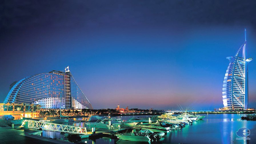 Готель був відкритий в 1998 році. Розташований: готель розташований на березі в 25 - км від міжнародного аеропорту Дубаї і в 20 км від центру міста. Харчування: BB, HB До послуг гостей: в готелі відкритий Spa - центр, що включає 2 сауни, 3 парових ванни, джакузі, невеликий басейн, 2 масажних кабінети, що пропонують великий вибір різних видів масажу, ароматерапію, рефлексологію. На території готелю знаходяться 5 басейнів. Ресторани та бари: всього в готелі 23 ресторану з них: ресторан «Al Khayal» - спеціалізується на стравах ліванської кухні, вечорами тут проходять яскраві шоу і музичні вистави. У «The Apartment Lounge + Club» можна відпочити під модну музику ді - джеїв в клубі або насолодитися вишуканою кухнею у вітальні. «Beachcombers» - прибережний ресторан, що представляє блюда південно - східної Азії. У ресторані «Latitude» подаються різноманітні страви інтернаціональної кухні. «Carnevale» - ресторан італійської кухні. «Dhow & Anchor» відтворює атмосферу традиційного англійського паба. У ресторані «Der Keller» пропонуються страви сучасної німецької кухні. У ресторані «West» представлені страви всіх куточків Америки, а також тут звучить жива музика. У ресторані «Marina Seafood Market», з прекрасним видом на затоку, готуються страви з найсвіжіших морепродуктів. «Palm Court» - приємне місце для відпочинку і післяобіднього чаю та аперитив. У ресторані «La Parrilla» можна покуштувати страви аргентинської кухні і помилуватися запальним танго. Бар «Uptown», розташований на 24 поверсі, пропонує екзотичні коктейлі і приголомшливий панорамний вид на море і місто. У ресторані «Waterfront» біля моря запропоновано легке меню. «La Veranda» - прибережне кафе з терасою, що виходить на мальовничу гавань. «Ocean Blue» - ресторан біля моря з видом на готель Burj Al Arab, тут подаються гарячі і холодні закуски і страви міжнародної кухні. У Pool Bar біля басейну - всілякі напої і легкі закуски. У ресторані «Villa Beach», з дивним видом на затоку, подаються страви середземноморської кухні. «360 °» - популярний у місті клуб, де виступають модні ді - джеї. Пляж: готель має власний обладнаним піщаним пляжем протяжністю 900 м і площею 36 000 кв.м. Для дітей: У готелі працює дитячий клуб Sinbad's Kid's Club (для дітей від 1 до 12 років), є дитячий басейн з гірками, ігрова кімната, комп'ютерний зал, ігровий майданчик, в ресторанах пропонується дитяче меню, можливі послуги няні (за запитом). Поряд з готелем знаходиться водний парк Wild Wadi (безкоштовно для гостей готелю).