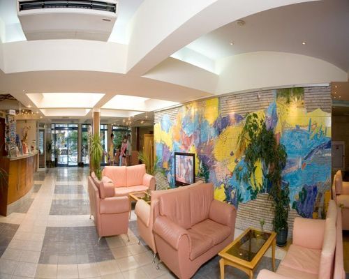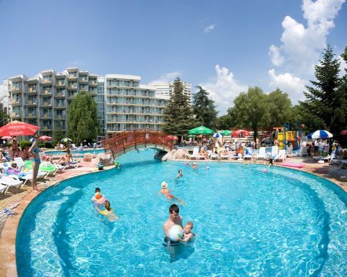 Розташування: Готель розташований в центральній частині курорту Албена, в екологічно чистому районі, в 100 метрах від моря, в 40 км від Варни, в 1 км від автобусної зупинки. Опис: Готель входить в комплекс разом з готелями «Лагуна Гарден» і «Лагуна Біч», які були повністю реконструйовані в 2001-2002 рр.. Готель має 7 поверхів, 3 ліфта, і номерний фонд: 111 двомісних номерів (2 +1 або +2); 15 одномісних номерів;; 6 апартаментів (2 +2); Передбачені номери для інвалідів. Інфраструктура: Готель пропонує гостям 2 басейни з дитячим відділенням, закритий басейн, 2 ресторани, магазини, лобі-бар, бар біля басейну, фітнес зал, джакузі, масаж, дитячий клуб, доступ до інтернету, парковка для автомашин. Номери: пропонує одномісні, двомісні номери та апартаменти. Апартаменти 2-х місні та 4-х місні, 3 двомісних мезонети. У номерах: центральний кондиціонер ▪ ванна кімната: душ / WC / фен ▪ телефон ▪ телевізор з супутниковими каналами ▪ міні-бар ▪ балкон / лоджія ▪ двох'ярусне ліжко для дітей (у 6 двомісних номерах) ▪ вітальня / спальня / кухонний бокс (в апартаментах ) Спорт і розваги: дитячі спортивні ігри - кілька разів на тиждень; анімаційні шоу для дорослих, прокат велосипедів і велорикш, майданчик для міні гольфу, тенісний клуб і школа тенісу, відкритий басейн, настільний теніс, дартс, пляжний волейбол і футбол, аеробіка, бадмінтон , баскетбол. Для дітей: дитячий майданчик, за доп. плату міні-клуб, послуги няні. Харчування: All inclusive - шведський стіл: - сніданок з 7.30-10.00, обід 12.30-14.30, вечеря 18.00-21.00 - інтернаціональна кухня, вегетаріанські та дієтичні страви, морозиво, дитячий буфет. Тематичні вечори (болгарська національна кухня, італійська національна кухня, вечір морепродуктів).- З 11.00 до 12.30 та з 14.30 до 16.30 годин - холодні і гарячі закуски, салати, барбекю, смажена картопля, напої, фрукти, печиво в барі біля басейну. Морозиво місцевого виробництва - з 11.00 до 21.00.- З 10.00-23.00 годин в лобі-барі і на барі біля басейну алкогольні та безалкогольні напої місцевого виробництва, чай, кава, розливне пиво, вино. Напої іноземного виробництва, коктейлі, кава еспресо, чіпси за дод. плату. Примітка: після 23.00 год всі напої на барі платні. Анімація: дитяча спортивна анімація - 6 рази в тиждень; анімаційне шоу для дорослих мінімум 4 рази на тиждень. Пляж: Піщаний пляж (міський). Парасольки і шезлонги - платно |