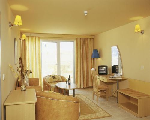 Розташування: у верхній частині курорту Албена, в 950 м від пляжу. У готелі: 328 номерів, хол з м'якими меблями, рецепція з сейфами за дод. плату, ресторан, бар, дискотека, обмін валют. У номерах готелю Com 3 *: кабельне ТБ, телефон, холодильник, ванна, туалет, радіо, кондиціонер, балкон люті, перукарня. Спорт і розваги: відкритий басейн - 1 парасолька і 2 лежаки на номер безкоштовно, джакузі, настільний теніс, фітнес, дартс, пляжний волейбол і футбол, аквааеробіка, аеробіка, бадмінтон, баскетбол, скейт-майданчик і скейт-траса, стрільба з лука, безкоштовний шатл-бас до пляжу (щопівгодини). За додаткову плату - школа тенісу, дельтаплан, школа серфінгу, верхова їзда, велосипеди, більярд. У номері: душ, супутникове ТВ, телефон, балкон. Всі номери без кондиціонерів. Пляж: До пляжу близько 900 м. Кожні 30 хвилин туди ходить shuttle-bus безкоштовно (з 9.30 до 17.00 годин після обіду під час сезону), міський;піщаний; Додаткова інформація: за дод. плату дозволено розміщення домашніх тварин. Харчування: ультра все включено. Шведскій стіл - сніданок з 7.30-10.00, обід 12.00-14.00, вечеря 18.00 - 21.00. З 11.00 до 15.00 години - холодні і гарячі закуски, чай, кава, фрукти, морозиво і печиво в снек-барі біля басейну з 10.00-16.00 години в лобі-барі, а також усі алкогольні та безалкогольні напої місцевого виробництва з 11.00-23.00 в лобі - барі і барі біля басейну. Для дітей: Водні гірки, анімація, дитячий басейн; дитячий майданчик; няня. |