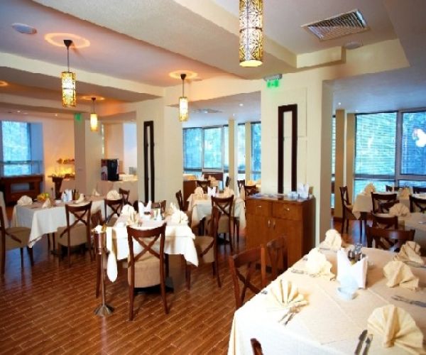 Розташування: Готель «Фесту Чамкорія» розташований на гірськолижному курорті Боровець, серед вікового соснового лісу. Готель знаходиться в 1200 м від центру курорту Боровець і початкової станції підйомника, кінцева станція, якого є лижний центр «Маркуджіці» - найвищий на Балканському півострові. Розміщення: Готель «Фесту Чамкорія» категорії 4 зірки пропонує 10 розкішних апартаментів з однією спальнею, 26 маленьких апартаментів, 12 двомісних номери і 6 одномісних номери. Інтер'єр в альпійському стилі створює затишок і розкіш. Всі апартаменти та номери розкішно обставлені, мають центральне опалення і кондиціонування. У кожному апартаменті і номері є ванна кімната з ванною або душовою кабіною, фен, телефон, кабельне телебачення, LCD телевізори, міні-бар, балкон з прекрасним видом. Бари та ресторани: Головний ресторан готелю розрахований на 100 місць, де гості готелю зможуть насолодитися стравами місцевої та міжнародної кухнями. Лобі-бар з каміном пропонує спокійну атмосферу і затишок. Розваги: Готель пропонує ігровий зал, дитячий куточок, а також СПА центрі критий басейн. В готелі є паркінг і транспорт до лижних трас і назад. |