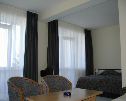 Розміщення: Двомісний номер (24 кв.м.): два окремі ліжка, телефон, TV SAT, кондиціонер, балкон, душ, фен, сейф, підлога в номері - плитка. |