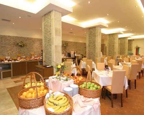 На території готелю: - Ресторан, - Лобі-бар, - Бар біля басейну, - Дискотека, - Конференц-зал, - Інтернет, - Сейф, - Обмін валюти, - Хімчистка, - Автостоянка, - Магазин, - Перукарня, - Косметичний салон, - Оренда машин, - Мед. кабінет.