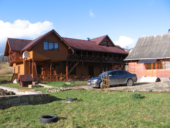 Розташування: У селі Татарів, 82 км від м. Івано-Франківська. Під'їзд — вкатана грунтова дорога, 400 м від траси. Опис: Два дерев'яні двоповерхові котеджі (26 місць), сауна, альтанка з мангалом, літній басейн, дитячий майданчик. Котедж №1 Є кухня-їдальня і 4 номери: люкс, півлюкс і 2 двомісні стандарти. Стандарт — двоспальне ліжко, телевізор, шафа для одягу, санвузол (душова кабіна, в одному — ванна, туалет, умивальник). Додаткові місця — розкладний диван. Півлюкс — студіо-номер з каміном, двоспальне ліжко, телевізор, розкладний диван, шафа для одягу, санвузол (душова кабіна, умивальник, туалет). Люкс — двокімнатний номер, спальня (двоспальне ліжко), вітальня (розкладний диван, телевізор, шафа для одягу), санвузол (душова кабіна, умивальник, туалет). Котедж №2 (4 номери). Кожний номер має окремий вхід знадвору. На першому поверсі — люкс: вітальня (м'який куток, камін, шафа для одягу, стіл, електорчайник, посуд), спальня (двоспальне ліжко, телевізор), санвузол (душ, туалет, умивальник, біде). На другому поверсі — 3 півлюкси (двоспальне ліжко, диван, телевізор, шафа для одягу, столик, електрочайник, посуд, санвузол — душ, туалет, умивальник, біде). Харчування: За домовленістю. Українська та європейська кухня, гуцульські страви. Користування кухнею — за домовленістю. До найближчого магазину, кафе — 500 м. Сервіс, включений у вартість: Паркінг. Інтернет Wi-Fi, супутникове телебачення. Прання одягу, користування праскою. Прибирання кімнат, зміна рушників, постелі — за потребою. Сервіс за додаткову оплату: Сауна з кімнатою відпочинку. Спорт, розваги: Відкритий басейн (7,5х4,2 м, глибина — 1,5 м) — безкоштовно. Дитячий майданчик. Рафтинг, прокат квадроциклів. Походи в гори, екскурсії, збирання грибів та ягід, катання на конях, настільний теніс. Трансфери до витягів у Буковель (12 км). Ціни 2015 - 2016рр. за номер за добу (грн): Номер/Період 22.09-25.12 26.12-08.01 09.01-07.03 стандарт 444 800 444 півлюкс з каміном 667 1200 667 люкс 778 1800 778 Новий рік — за домовленістю. За потребою дитяче ліжко надається безкоштовно. |