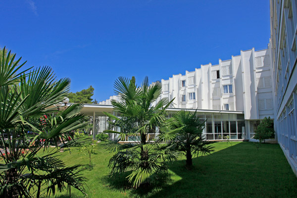 Расположение: в сосновом парке возле пляжа. Пляж: собственный мелко галечный, 2 минуты ходьбы от отеля. Зонтики, лежаки на пляже - за дополнительную плату (около 5 евро лежак + зонтик).