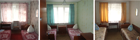 Одно (30)-; двухместные (55) номера третьей категории с частичными удобствами (умывальник в номере, туалет - на этаже, душ - в душевом павильоне за доп.плату). В номере: набор мебели; телевизор и холодильник - на этаже. Стоимость проживания 1 человека, в сутки в гривнах: |