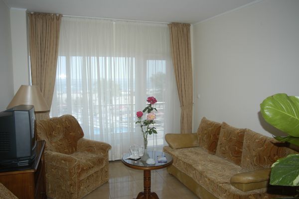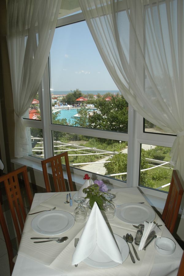 Местоположение 50 м. от моря, северная часть курорта. 6-этажное здание отеля имеет прямой выход на пляж, рассчитанный на 238 мест. Расположен между отелями Адмирал и Орфей. Часть номеров имеет вид на море, часть - на озеро. Полностью реновований в 2006 году. В отеле: 120 номеров (120 двухместных стандарт и люкс номеров, 6 апартаментов), ресторан на 250 мест, терраса, бар, 2 конференц-зала (160 и 80 мест), оборудованы видео проектором, флипчартом, доступом в Интернет и экраном, открытый бассейн с баром и детским отделением, парикмахерская, салон красоты, теннисная площадка, детская площадка, сейф, обмен валюты, стоянка, СПА центр, массаж, фитнес зал.
