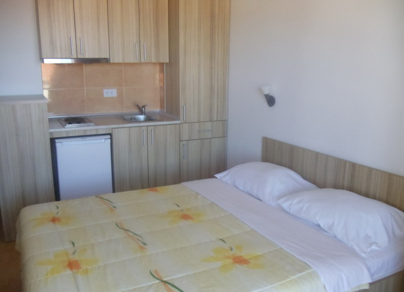 Проживання: 4 2-місні номери-cтудіо (1 кімнатний номер) 2 апартаменти 2+1 ( 2-кімнати, але між ними нема дверей).