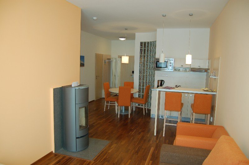 Месторасположение: Новый современный отель, находится на курорте Штребске Плесо, рядом с автостанцией и железнодорожной станцией. Горнолыжный центр находится в ростоянии 700 метров, рядом есть паркинг ски-бусса. 80 апартаментов с современным обурудованием с разной площадью ( 36-104 м.кв ), некоторые и для инвалидов.
