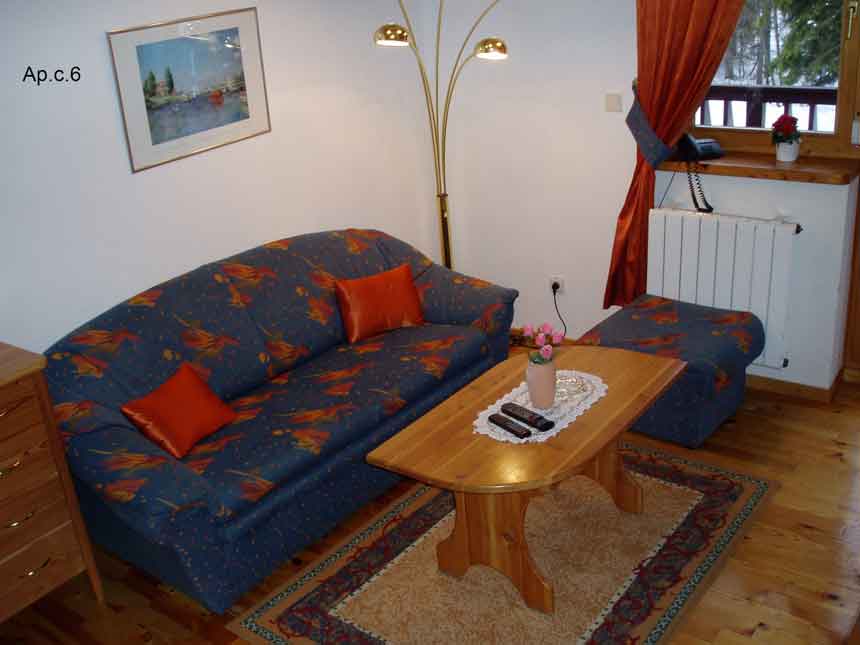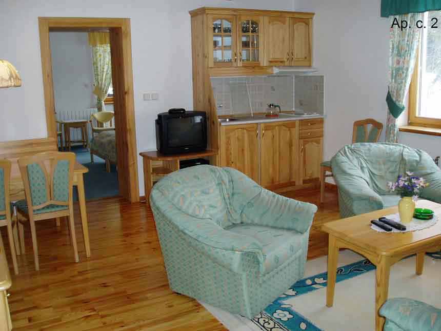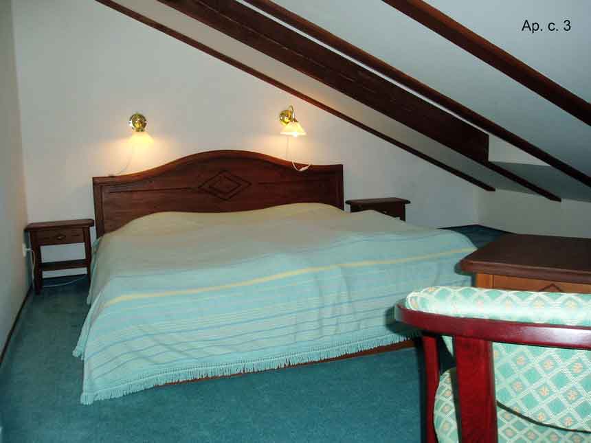 АРТ A2 расположен на втором этаже. Адаптирован для инвалидов. Апартамент состоит из гостиной с диваном, столовой с полностью оборудованной кухней, спальни с двумя отдельными кроватями, которые могут быть сдвинуты, балкон, сушилка для одежды, ванная комната с туалетом. Из окон этого номера открывается восхитительный вид на горы. АРТ A3 состоит из двух этажей, вход со второго этажа гостиницы. На нижнем этаже есть небольшая гостиная с диваном, столовая с полностью оборудованной кухней, ванная с туалетом. Верхний этаж состоит из уютной спальни-мансарды с двухспальной кроватью. АРТ A4 состоит из двух этажей, вход со второго этажа гостиницы. На нижнем этаже большая гостиная комната с диваном, столовая с полностью оборудованой кухней, сушка для одежды, южный балкон и ванная комната с большой угловой ванной и туалетом. Верхний этаж состоит из двух уютных спален, одна с двухместной кроватью и другая с одной кроватью. АРТ A5 расположен на втором этаже и состоит из гостиной с диваном, столовой с полностью оборудованной кухней, есть балкон, выходящий на юго-запад, спальни с двойной кроватью для двух человек и ванная комната с туалетом. АРТ A6 расположен на втором этаже и состоит из небольшой гостиной с диваном, столовой, полностью оборудованной кухни, балкона с видом на горы, романтической спальни с двойной кроватью и стеклянной облицовкой стен, ванной комнаты с большой угловой ванной и отдельного туалета. Кроме того в номере есть сушка для одежды. АРТ A7 расположен на третьем этаже и состоит из гостиной с диваном, полностью оборудованной кухнеи, балкона на юго-запад, спальни с двухспальной кроватью, ванной комнатоы с большой угловой ванной и отдельным туалетом. АРТ A8 находится на четвертом этаже, но вход в него с третьего этажа. Эта уютная квартира состоит из гостиной с диваном, столовой с полностью оборудованной кухней, двух спален (одна с двумя раздельными кроватями и другая с двуспальной кроватью), балкона, ванной комнаты с большой угловой ванной и отдельного туалета. АРТ A9 - это большая роскошная квартира в два этажа со входом с третьего этажа отеля. Нижний этаж состоит из большой гостиной с камином и диваном, полностью оборудованной кухни и столовой со стеклянной стеной на сторону леса, большого балкона с фантастическим видом на горы, спальни с двуспальной кроватью, ванной комнаты с джакузи, отдельного туалета и сушки для одежды. Мансардный этаж состоит из трех уютных спален, две с раздельными кроватями и третья с двуспальной кроватью, большой угловой ванной комнатой с джакузи, душем, отдельным туалетом. Инфраструктура отеля:- конференц-зал на 25 человек (всю необходимую технику можно взять в аренду);- гараж; - магазин. Сервисы:- охраняемая парковка;- прокат лыж;- прокат велосипедов. Развлечения и спорт:- фитнесс-центр;- сауна. Для детей:- детская площадка;- игровой уголок рядом с рестораном;- детское меню;- детские стулья в ресторане. Рестораны, бары:- ресторан на 50 человек (в летнее время можно обедать в саду).