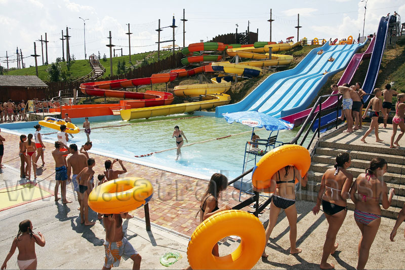 Аквапарк предлагает проживание и в 155 апартаментах и бунгало -апартаменты и бунгало в охотничьем стиле, в стиле скаутского лагеря, в рыбацком стиле, в стиле Липтовской деревни, в стиле ремесельного двора, в индейском стиле, в винодельческом стиле.