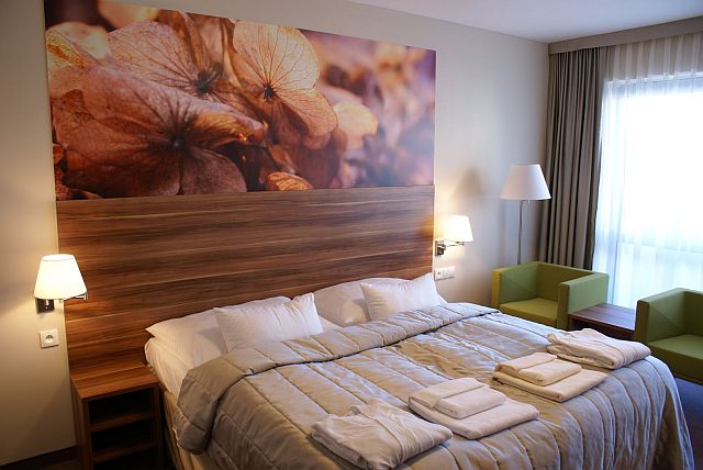 Гостиница разположена в центре курорта. Все лечебные процедуры проводятся в здании отеля.На расстоянии 100 метров от отеля находится термальный аквапарк с открытыми и закрытыми бассейнами. Аквапарк открыт круглогодично.