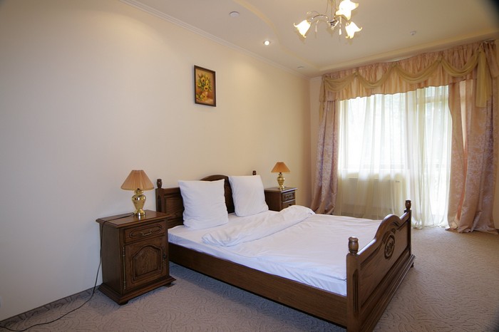 Мебель Дубовый спальный гарнитур, ортопедический матрац Телевизор SAMSUNG со спутниковым приемом телепередач Телефон телефонный аппарат с персональным номером Санузел Умывальник, душевая кабина, унитаз, Вся сантехника фирмы GROE доступ к Интернет сети Кондиционер