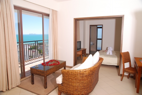 В номерах: просторный балкон (начиная с 3-го этажа - вид на море), кондиционер с индивидуальным климат-контролем, телефон, спутниковое телевидение, мини-бар, зона кухни, набор для приготовления чая и кофе, ванна / душ (в номерах также подается Вожа из термальных источников), пляжные полотенца, халаты, тапочки, фен, обслуживание в номерах - 24 часа, напряжение в сети 220В.