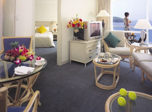 В отеле: 358 номеров категории: 127 Superior Scenic View (30 кв.м.) - 1-7 этажи, вид на холмы; 37 Superior Sea View (30 кв.м.) - вид на море, балкон; 125 Deluxe Sea View (30 кв.м) - 2-7 этажи, вид на море, балкон; 1 Kid Suite Mount View (36 кв.м.) - вид на горы, балкон, гостиная и спальня; 1 Kid Suite Sea View (36 кв.м.) - вид на море, балкон, гостиная и спальня; 5 Scenic Suite (36 кв.м.) - вид на холмы и море, 2 балкона (на 1 балконе отдельные лежаки), гостиная, спальня, ванная, туалет для гостей; 22 Bay Suite (36 кв.м.) - 2-7 этажи, вид на море, балкон, гостиная и спальня, гостевой туалет, 2 ТВ; 2 Deluxe Bay View Suite (98 кв.м.) - вид на море, балкон, гостиная и спальня, 1 Presidential Suite - вид на холмы и на море, 3 балкона (на 1 балконе отдельные лежаки), прихожая, гостиная, 2 спальни , кухня, ванная, туалет для гостей. На 6 и 7 этажах расположен Executive floor, в номерах есть компьютеры: 17 Executive Scenic (30 кв.м.) - вид на холмы, гостиная, спальня; 19 Executive Deluxe Bay (30 кв.м.) - вид на море, балкон, гостиная, спальня, ванная комната. На 2-м этаже номера только для некурящих.