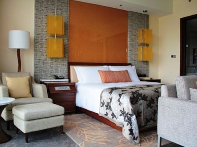 Розміщення | До уваги гостей пропонується 675 чудових номерів, включаючи розкішні вілли з приватними басейнами. Площа номерів варіюється від 52 до 350 кв. метрів. 65% номерів готелю з видом на море. Готель також пропонує номери для некурців, номери для інвалідів і номери конекшн Grand Room (розташовані з 2 по 9 поверх в східному крилі і з 3 по 9 поверх в західному крилі, 52 кв.м., без балкону, кінг сайз або твін, душова кабіна + ванна, вид на гори і поле для гольфу, максимальне розміщення 3 людини (дорослих) або 2 дорослих та 2 дитини, до 18 років) Ocean View Room (розташовані з 2 по 9 поверх в східному крилі і з 3 по 9 поверх в західному крилі, 52 кв.м., балкон, кінг сайз або твін, душова кабіна + ванна, вид на море 45 градусів, конекшін з Ocean View Suite і Chairman Suite, максимальне розміщення 3 особи (дорослих) або 2 дорослих та 2 дитини (до 18 років)) Deluxe Ocean View Room (розташовані з 2 по 9 поверх в східному крилі і з 3 по 9 поверх в західному крилі, 52 кв.м., балкон, кінг сайз або твін, душова кабіна + ванна, вид на море 90-135 градусів, конекшін з аналогічною категорією, так само можливий конекшін з Deluxe Ocean View Suite, максимальне розміщення 3 особи (дорослих) або 2 дорослих та 2 дитини (до 18 років)) Laguna Room (розташовані на 1-му поверсі в східному крилі, 52 кв.м., індивідуальний джакузі і внутрішній дворик з басейном, кінг сайз або твін, душова кабіна + ванна, з видом на сад і віллу, максимальне розміщення 3 особи (дорослих ) або 2 дорослих та 2 дитини (до 18 років)) Grand Suite (розташовані 8-9 поверх в східному крилі і з 3 по 9 поверх в західному крилі, 102-110 кв.м., без балкону, кінг сайз, душова кабіна + ванна, вид на гори і поле для гольфу, максимальне розміщення 3 людини (дорослих) або 2 дорослих та 2 дитини, до 18 років) Ocean View Suite (розташовані з 3 по 9 поверх в західному крилі, 69-90 кв.м., балкон, кінг сайз, душова кабіна + ванна, вид на море 45 градусів, конекшін з Ocean View Room, максимальне розміщення 3 особи (дорослих ) або 2 дорослих та 2 дитини (до 18 років)) Deluxe Ocean View Suite (розташовані з 3 по 9 поверх в східному і західному крилі, 90-116 кв.м., балкон, кінг сайз, душова кабіна + ванна, вид на море 90 градусів, конекшін з Deluxe Ocean View Room, максимальне розміщення 3 людини (дорослих) або 2 дорослих та 2 дитини (до 18 років)) Prestige Ocean View Suite (розташовані 7-8 поверх в східному крилі і з 3 по 9 поверх в західному крилі, 132-165 кв.м., балкон, кінг сайз, душова кабіна + ванна, вид на море 135 градусів, максимальне розміщення 3 людини (дорослих) або 2 дорослих та 2 дитини (до 18 років)) Laguna Suite (розташований на 1-му поверсі в східному крилі, 112 кв.м., індивідуальний джакузі і внутрішній дворик з басейном, кінг сайз, душова кабіна + ванна, з видом на сад, максимальне розміщення 3 особи (дорослих) або 2 дорослих і 2 дитини (до 18 років)) Chairman Suite (розташований на 9 поверсі в східному крилі, 340 кв.м., балкон, кінг сайз + твін, душова кабіна + ванна, вид на море 180 градусів, конекшін з Ocean View Room, максимальне розміщення 5 осіб (дорослих) або 4 дорослих і 2 дитини (до 18 років)) Villa with 1 Bedroom (розташовані в східній і західній частині території готелю, 215 кв.м., кінг сайз, душова кабіна + ванна, індивідуальний басейн і покоївка, вітальня, кабінет, їдальня, спальня, внутрішній дворик, вид на сад, максимальне розміщення 3 людини (дорослих) або 2 дорослих та 2 дитини (до 18 років)) Villa with 2 Bedroom (розташовані в східній і західній частині території готелю, 275 кв.м., кінг сайз + твін, душова кабіна + ванна, індивідуальний басейн і покоївка, вітальня, кабінет, їдальня, 2