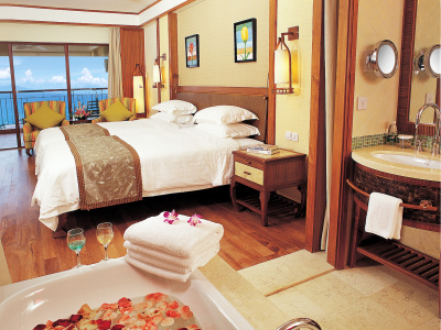 Horizon Resort 5* побудований за проектом відомих американських архітекторів, які постаралися створити на території і в будівлі готелю екзотичну обстановку тропічного раю, чудово поєднується з навколишніми пальмовими садами і білосніжним піщаним пляжем. При обробці використовувалися природні матеріали: каміння, бамбук, дерево і багато іншого. Розташування: на білому піщаному березі престижного курорту Ялуньвань 20 км від м. Санья і 25 хвилин їзди від міжнародного аеропорту Фенікс. У готелі: Готель складається з двох симетричних корпусів: Horizon I (побудований в 1998 році) і Horizon II (побудований у 2004 році). Корпус 'Horizon I' - 359 номерів категорії: 111 Standard (25кв.м.) - вид на гори, без балкона; 39 Garden View (25кв.м.) - вид на сад, без балкона; 94 Sea View (25кв.м.) - частковий вид на море (30%) і на гори, балкон; 41 Superior Sea View (25кв.м.) - частковий вид на море (30% - 70%) і на сад, балкон; 20 Deluxe Sea View (25кв.м.) - фронтальний вигляд на море, балкон; 14 Family Flat (35кв.м.) - вид на сад, балкон, одна велика кімната, розетка для підключення до Інтернет (без комп'ютера). Можливе розміщення до 3-х осіб; 20 Family Flat (70 кв.м.) - вид на сад, балкон, одна велика кімната, комп'ютер. Можливе розміщення до 4-х осіб; 14 Sea View Suites (20 кв.м. +25 кв.м.) - 2-5 поверхи, балкон, 2 ТВ, вітальня і спальня розділені дверима, вид зі спальні на море, з вітальні - на сад; 4 Deluxe Sea View Suites (20 кв.м. +25 кв.м.) - 2-5 поверхи, фронтальний вид на море, балкон, ТБ з рідкокристалічним екраном, гостьовий туалет, сауна; 2 Presidential Suites - фронтальний вигляд на море, балкон, розташований на 6 поверсі. Корпус "Horizon II" - 428 номерів категорії (все з балконом): 64 Deluxe Mount View (56кв.м.) - 2-8 поверхи, вид на гори, душова кабіна + ванна, електронні ваги;; 82 Grand Superior Sea View (56кв.м.) - 1-4 поверхи, частковий вид на море (30% - 50%), душова кабіна + ванна, електронні ваги, гардеробна, балкон (шезлонги, столик); 110 Grand Deluxe Sea View (56кв.м.) - 5-8 поверхи, частковий вид на море (50% - 80%), душова кабіна + ванна, електронні ваги, гардеробна, балкон (шезлонги, столик); 16 Jacuzzi Garden View (56кв.м.) - 1 поверх, вигляд на сад, джакузі на балконі; 42 Super Sea View Suite (56кв.м.) - 1-8 поверхи, вітальня і спальня розділені дверима, 2 балкони, кухонний куток (СВЧ, холодильник, пральна машина, тостер, посуд), 2 телевізори, у ванній кімнаті 2 раковини, гардеробна, прасувальна дошка, праска; 23 Deluxe Mountain View Suite (88кв.м.) - 1-8 поверхи, вид на гори, вітальня і спальня розділені дверима; 16 Elegant Superior Sea View Suite (88кв.м.) - 5-8 поверхи, частковий вид на море (30% - 50%), вітальня і спальня розділені дверима; 13 Elegant Deluxe Sea View Suite (88кв.м.) - 1-8 поверхи, частковий вид на море (50% - 80%), вітальня і спальня розділені дверима; 44 Super Sea View Suite (110кв.м.) - 1-8 поверхи, 100% вид на море, вітальня і спальня розділені дверима; 1 Royal Suite - 8-й поверх. У номерах: кондиціонер, телефон, телевізор (канал TBЦ), комп'ютер, Інтернет (безкоштовно), стельовий вентилятор, радіо, міні-бар, набір для приготування чаю та кави, ванна кімната, халати, тапочки пляжні та кімнатні, фен, сейф. Ресторани, бари: «Island Breeze» - пекінська, шанхайська і сичуанська кухні; «Hot Pot» - BBQ в саду (барбекю страви і "китайський самовар"); «Korean Wonder` s »- корейська кухня; «Cocо court» - традиційна місцева хайнаньських кухня, а так само хунаньська і кантонська кухні;; «All Seasons» - під спеціальний замовлення для груп; «Coffee Shop» - ресторан західних і азіатських делікатесів. «Lobby Lounge» - свіжовичавлені соки з тропічних фруктів, коктейлі, напої і легкі закуски, жива музика;; «Pool Bar» - бар у басейну - свіжовичавлені соки з тропіч