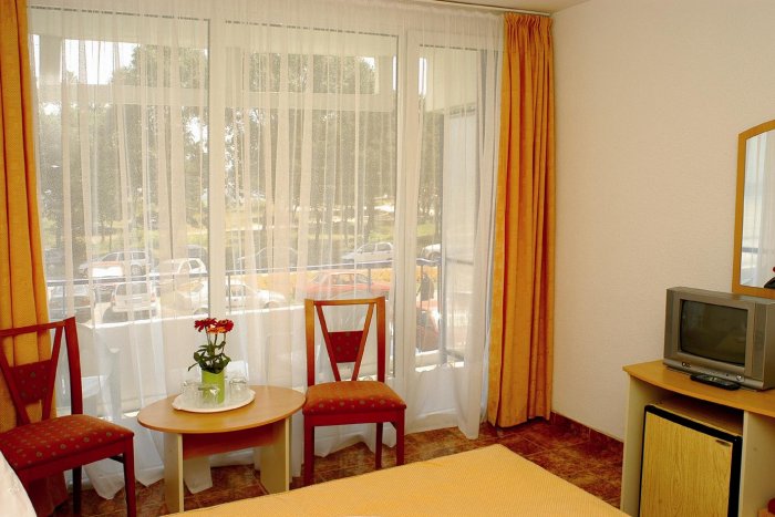 151 номер, розташований на 5 поверхах. У номері: - Ванна кімната з феном; - Супутникове телебачення; - Балкон або тераса; - Телефон; - Праска і прасувальна дошка. Інфраструктура готелю: - Reception; - Сейф; - Ліфт; - Паркування автомобілів. Розваги і спорт: - Сонячна тераса; - Плавальний басейн з шезлонгами і парасольками; - Пляжні та водні види спорту. Ресторани, бари: - Комфортабельний ресторан, що пропонує відвідувачам страви міжнародної та румунської кухонь; - Бар. Пляж: Піщаний пляж, шезлонги, парасольки за додаткову плату. Ціни в євро/ 1 особа/ ніч | Період 1 травня- 30 вересня 2011 | | | 01.05 - 03.06 27.08 - 30.09 | 04.06 - 01.07 13.08 - 26.08 | 02.07 - 12.08 | Місце в DBL | 18.00 | 20.00 | 30.00 | Supliment SGL | - | 15.00 | 25.00 |