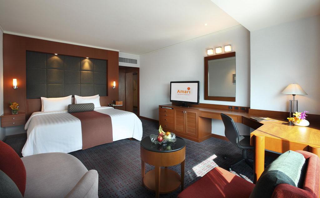Готель відрізняє вдале розташування - поблизу відомих торгових і розважальних центрів Бангкока. Великі стильні номери, високий рівень сервісу, відмінне харчування. Розташування:в 21 км від аеропорту, в центрі Бангкока, в районі Пратунам, недалеко від Central World Plaza Platinum та центру електроніки Panthip Plaza. Побудований в 1994 р. Харчування: BB,HB В номері: ванна і душ,фен,кондиціонер,CD / DVD-програвач (DVD),телефон,міні-бар,набір для приготування чаю / кави,сейф: в номері, безкоштовно,Wi-Fi - платно,прасувальна дошка: за запитом,праска: за запитом,халат,тапочки,супутникове та кабельне В готелі:басейни з джакузі: 1 (відкритий; лежаки і рушники - безкоштовно,конференц-зали: 23 (10-1200 чол.),спа-центр,магазини,Wi-Fi платно,пральня,перукарня,ресторани: 5 (Heichinrou - китайська, Grappino - італійський, Promenade-інтернаціональний (цілодобовий), Thaion 4 - тайський, Amari Bakery - випічка, бари,бізнес-центр,хімчистка Для дітей:дитяче меню в ресторані,дитячі стільчики в ресторані: за запитом,дитяче ліжечко: за запитом,послуги няні: за запитом,дитячі басейни: 1 Розваги і спорт:масаж платно (тайський),тренажерний зал безкоштовно,спа-центр платно (Sivara) |