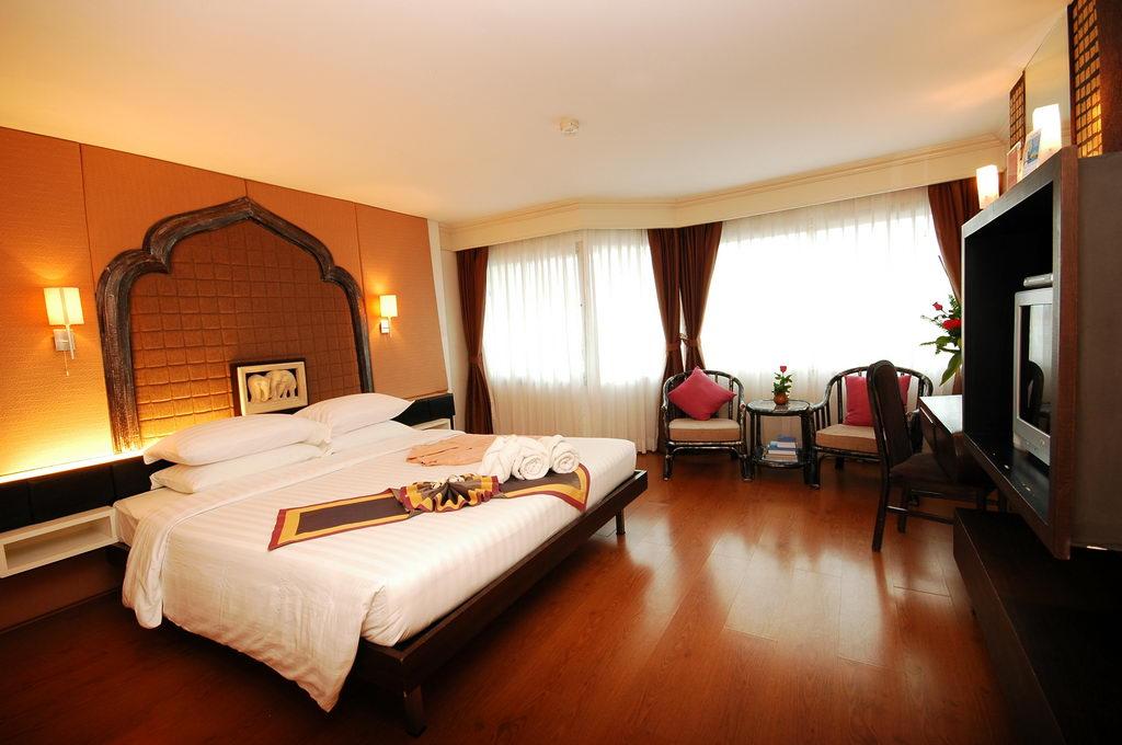 Приємний готель з зеленою територією. Відпочивають в основному туристи із Західної Європи. Підходить для економічного сімейного відпочинку. Розташування:в 132 км від аеропорту, в центральній частині узбережжя Джомтьен, в 6 км від центру міста Паттайя, через дорогу від моря. Харчування:RO,BB,HB В номері: кондиціонер: індивідуальний,Інтернет: Wi-Fi, платно,ванна,міні-бар,халат,фен,телефон,набір для приготування чаю / кави (Deluxe, Deluxe Suite) сейф: не у всіх номерах і на ресепшн, безкоштовно,тапочки,CD / DVD-програвач,ТБ: супутникове та кабельне Пляж:міський,піщаний,біля басейну парасольки, шезлонги: безкоштовно,біля басейну рушники: безкоштовно,на пляжі парасольки, шезлонги: платно В готелі: Wi-Fi платно,пральня,ресторани: 2 (тайська і інтернаціональна кухня),бари: 1,спа-центр,салон краси,басейни: 1 (відкритий) Для дітей:послуги няні: за запитом, платно,дитяче ліжечко: за запитом,дитячий клуб,дитячі басейни: 1 Розваги і спорт:парна платно,водні види спорту платно (на пляжі),тенісний корт платно,тайський масаж платно |