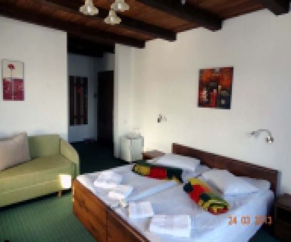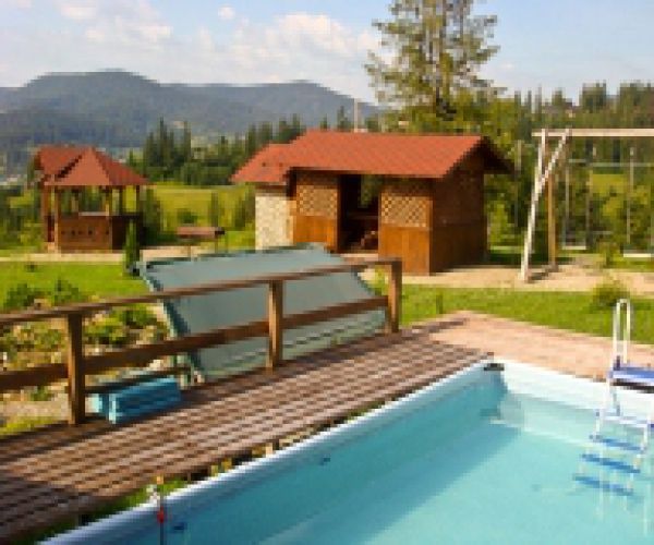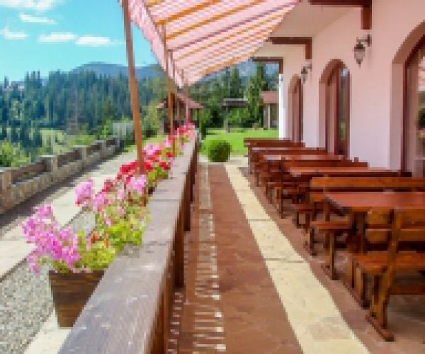 Пансіон «Альпійський двір» побудований в 2007 р. в стилі "альпійське шале" і розташований в екологічно чистій місцевості, на схилі гори на висоті 674 м/н.р.м. з дивовижним краєвидом на смт. Славське, особливо у вечірній час, у ста метрах від верхньої опори гірськолижного витяга "Політехнік". Безпосередньо з пансіону можна побачити всі гірськолижні витяги смт. Славсько: на заході – гора Тростян, на півночі – витяги Варшавка і Політехнік, на півдні – гораПогар і далі Захар Беркут. Опис номерів пансіонуПансіон «Альпійський двір» пропонує 10 стандартних однокімнатних номерів (8 двомісних, 2 тримісних) та 8 однокімнатних номерів "напівлюкс". Номери типу "Стандартний""Стандартний" - однокімнатний номер, 16 м2, килимове покриття, ліжка (відповідно до кількості місць: 2, 3), письмовий стіл, телевізор, внутр.телефон, сейф, шафа для одягу, санвузол (туалет, умивальник, душ, фен). Номери типу "Напівлюкс""Напівлюкс" - однокімнатний номер, 24,0-28,0 м2, килимове покриття, 2 односпальних ліжка, розкладна тахта, письмовий стіл, телевізор, внутр.телефон, міні-холодильник, сейф, шафа для одягу, санвузол (туалет, умивальник, душ, фен). Послуги і розваги на території пансіонуДо послуг відпочиваючих пропонуються бар, конференц-зал, інтернет, бібліотека, прокат DVD, більярд, настільний теніс, фінська сауна, відкритий басейн, зона відпочинку з мангалом і альтанками, сонячна тераса з дивовижним краєвидом, дитячий майданчик, лижна кімната з сушкою, прокат гірськолижного спорядження (взимку) та велосипедів (влітку), автостоянка. Розвагою для дітей, крім дитячого майданчика, також буде можливість близького спілкування із двома чарівними овечками, яких ми дбайливо доглядаємо. |