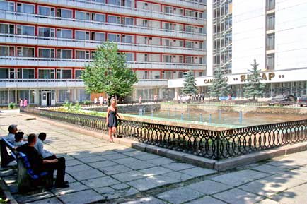 Проживання: два одинадцятиповерхових корпуси, обладнані зручними дво- і одномісними кімнатами з усіма вигодами, є й окремі двокімнатні номера "люкс". Харчування: Їдальня забезпечує відпочиваючих дієтичним харчуванням, що є невід`ємною частиною комплексного лікування. Лікування: остеохондрози, деформуючі остеоартрози, обмінно-дистрофічні поліартрити, посттравматичні артрити, обмінно-дистрофічні захворювання хребта; хвороби серцево-судинної системи: вегетосудинні дистонії, кардіоневрози; захворювання периферичної нервової системи: радикулоневрити, невралгії, корінцеві синдроми; функціональні захворювання нервової системи; хронічні неспецифічні запальні захворювання жіночих статевих органів та багато інших. Розваги: Величний палац культури "МИР", регулярні екскурсії в музеї, по історичних місцях, у Карпати, а також кафе, бари та купальне озеро. |