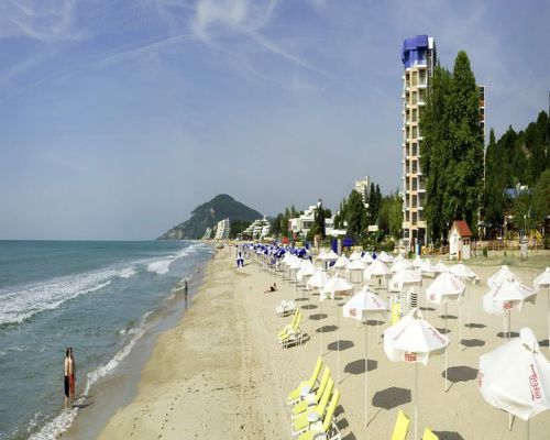 Розташування: Затишний готель-люкс. Комфортабельний окремий комплекс "Каліакра" (Kaliakra) 4 * знаходиться в декількох хвилинах від центру, поруч із пляжем, реконструйований у 1999 році. Всі номери з видом на море. Розташований на першій лінії чудового болгарського курорту Албена, в 20 метрах від піщаних пляжів Чорного моря та в 5 хвилинах ходьби від центру курортного містечка. Опис готелю: Два корпуси один з яких відповідає категорії «Суперіор», а інший - «Стандарт» 10 апартаментів, 130 - двомісних стандартних і 103 номера Суперіор, 30 одномісних і 1 номер для інвалідів; 1 панорамний і 5 внутрішніх ліфтів; хол із зручними місцями для відпочинку і безкоштовним Інтернет. В готелі: ресторан, бар, відкритий басейн, кафе, sky-бар, обмін валюти, парковка, бізнес-центр, інтернет-кафе, хімчистка, сейф, прокат автомобілів, конференц-зал, магазини, бар біля басейну, масаж. У номері: ванна, балкон, телевізор, телефон, радіо, мінібар, душ, супутникове телебачення, туалет, холодильник. Харчування: Тип харчування в готелі: все включено (AL) - шведський стіл. У пакет "все включено" входить: сніданок - 07:30-10:00, пізній сніданок - 10:00-11:00, обід - 12:30-14:30, вечеря - 18:30-21:30, пізній вечеря - 24:00-02:00, тематичні вечори - болгарський національний, італійської, морський, обід і вечерю в А-ла-карт ресторані в Албені за вибором (для туристів, що приїжджають до 08.07.11 після 26.08.11), піца , салати, фрукти, морозиво, BBQ раз на тиждень у снек барі біля басейну, болгарські та імпортні алкогольні та безалогольние напої і коктеклі в основному ресторані і в барах - 24 години на добу, міні бар. Для дітей: дитячий басейн; дитячий майданчик; міні-клуб / дитяча кімната. Розваги і спорт: амфітеатр, бадмінтон, шахи, нарди. Анімаційне шоу для дорослих мінімум 4 рази на тиждень. Настільний теніс; тенісний корт; волейбол; центр верхової їзди; аеробіка; водні види спорту на пляжі; дискотека; анімація. Море / пляж в Kaliakra Superior: Піщаний пляж знаходиться поряд з готелем. Парасолька і шезлонг на пляжі надаються безкоштовно. |