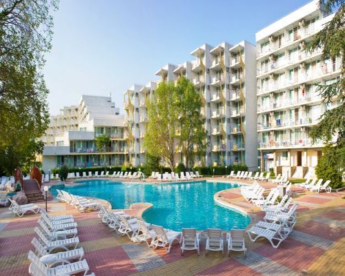 Готель Лагуна Гарден (Laguna Garden) 4 знаходиться в 150 метрах від чорноморського узбережжя курорту Албена. Готель відрізняється європейськими стандартами якості обслуговування клієнтів та першокласними умовами проживання. Розміщення: Готель "Лагуна Гарден" розташований на початку торгової алеї Албени, в 150 метрах від пляжу і бальнеологічного центру "Медика-Албена". Послуги в готелі: Ресторан з кондиціонером, відкриті басейни для дорослих та дітей, анімаційний зал, магазин, масажне студіо, конференц - зал. У номерах, в холі готелю і в ресторані є Wi Fi доступ до бездротового інтернету. Номери: Обладнані комфортабельними меблями, з конд-ціонером, ванною кімнатою з душем, телефоном, супутниковим телебаченням, міні баром і балконом. Можливе розміщення 2 дорослих з 2 дітьми. Харчування: ALL Спорт і розваги: Екскурсії, морські види спорту, пляжний волейбол, теніс, міні гольф, верхова їзда, дайвінг, футбол, баскетбол, настільний теніс, фітнес, більярд, велосипеди напрокат, лунапарк, боулінг. Денна та вечірня розважальна програма для дітей та дорослих 6 разів на тиждень. Для дітей: Дитячий клуб і дитячий басейн з міні аквапарком. Діти до 12 років з двома батьками відпочивають безкоштовно. Море і пляж: Відстань до моря: 100-300m, вхід в море зручний. Пляж піщаний. |