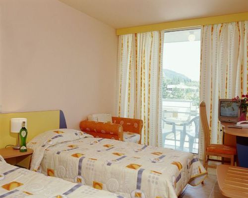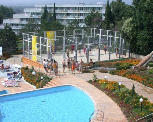 Розташування: у верхній частині курорту Албена, в 950 м від пляжу. У готелі: 328 номерів, хол з м'якими меблями, рецепція з сейфами за дод. плату, ресторан, бар, дискотека, обмін валют. У номерах готелю Com 3 *: кабельне ТБ, телефон, холодильник, ванна, туалет, радіо, кондиціонер, балкон люті, перукарня. Спорт і розваги: відкритий басейн - 1 парасолька і 2 лежаки на номер безкоштовно, джакузі, настільний теніс, фітнес, дартс, пляжний волейбол і футбол, аквааеробіка, аеробіка, бадмінтон, баскетбол, скейт-майданчик і скейт-траса, стрільба з лука, безкоштовний шатл-бас до пляжу (щопівгодини). За додаткову плату - школа тенісу, дельтаплан, школа серфінгу, верхова їзда, велосипеди, більярд. У номері: душ, супутникове ТВ, телефон, балкон. Всі номери без кондиціонерів. Пляж: До пляжу близько 900 м. Кожні 30 хвилин туди ходить shuttle-bus безкоштовно (з 9.30 до 17.00 годин після обіду під час сезону), міський;піщаний; Додаткова інформація: за дод. плату дозволено розміщення домашніх тварин. Харчування: ультра все включено. Шведскій стіл - сніданок з 7.30-10.00, обід 12.00-14.00, вечеря 18.00 - 21.00. З 11.00 до 15.00 години - холодні і гарячі закуски, чай, кава, фрукти, морозиво і печиво в снек-барі біля басейну з 10.00-16.00 години в лобі-барі, а також усі алкогольні та безалкогольні напої місцевого виробництва з 11.00-23.00 в лобі - барі і барі біля басейну. Для дітей: Водні гірки, анімація, дитячий басейн; дитячий майданчик; няня. |
