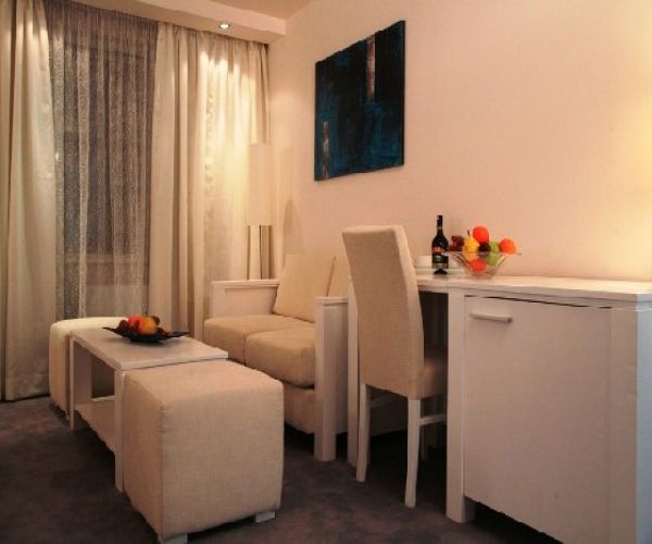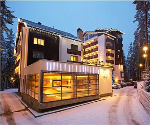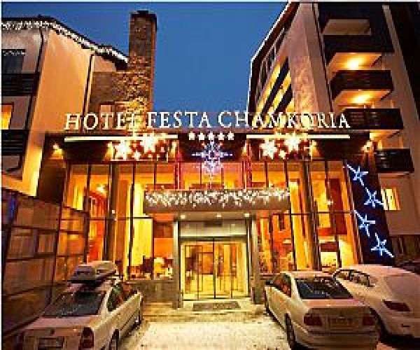 Розташування: Готель «Фесту Чамкорія» розташований на гірськолижному курорті Боровець, серед вікового соснового лісу. Готель знаходиться в 1200 м від центру курорту Боровець і початкової станції підйомника, кінцева станція, якого є лижний центр «Маркуджіці» - найвищий на Балканському півострові. Розміщення: Готель «Фесту Чамкорія» категорії 4 зірки пропонує 10 розкішних апартаментів з однією спальнею, 26 маленьких апартаментів, 12 двомісних номери і 6 одномісних номери. Інтер'єр в альпійському стилі створює затишок і розкіш. Всі апартаменти та номери розкішно обставлені, мають центральне опалення і кондиціонування. У кожному апартаменті і номері є ванна кімната з ванною або душовою кабіною, фен, телефон, кабельне телебачення, LCD телевізори, міні-бар, балкон з прекрасним видом. Бари та ресторани: Головний ресторан готелю розрахований на 100 місць, де гості готелю зможуть насолодитися стравами місцевої та міжнародної кухнями. Лобі-бар з каміном пропонує спокійну атмосферу і затишок. Розваги: Готель пропонує ігровий зал, дитячий куточок, а також СПА центрі критий басейн. В готелі є паркінг і транспорт до лижних трас і назад. |