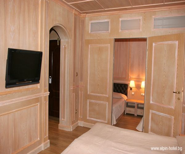 Готель «Alpin» - це маленький розкішний готель в центрі курорту, поруч з підйомником і з усілякими розвагами - магазинами, ресторанами і барами. З вікон готелю відкривається захоплюючий вид на гори і сосновий бір. Місце розташування: До підйомника - 1 хв До центру - 100 м До автобусної зупинки - 100 м Аеропорт: Софія - 72 км Типи номерів: - 5 двомісних - 1 апартамент - 2 студіо - 4 вілли з сауною - 4 вілли без сауни - 2 двоповерхові вілли Опис номерів: Є номери для некурящих. У номері студіо можливе розміщення до 4 чоловік. - Двоспальне ліжко / два окремі ліжка - Супутникове TV - Доступ в Інтернет - телефон - сейф - ванна - фен - балкон - Панорамні тераси Апартамент: приміщення найвищої категорії в готелі «Альпін». Підходить для людей, які віддають перевагу справжньому комфорту в обслуговуванні. Розташування - апартамент знаходиться на третьому поверсі (останній поверх готелю) з видом на гірськолижні траси і сад готелю Спальня - велике ліжко з балдахіном і сучасної декорацією, одномісне ліжко (відкидне), додатковий розсувний диван, дитяче ліжечко (за запитом). Робочий куточок - повністю обладнаний, призначений для плідної роботи, Зона відпочинку з м'якими меблями Ванна - джакузі, душ, фен, телефон. устаткування: LCD телевізор DVD Високошвидкісний кабельний інтернет Комп'ютер, бездротова мишка і клавіатура цифрове телебачення Міні-бар Центральне опалення Сейф Опис вілл: -Вілла Двоповерхова (150 кв.м.): можливе розміщення тільки на першому поверсі або тільки на другому поверсі, передбачено 2 різних входи; вітальня з м'якими меблями і дві спальні (двоспальне ліжко, два окремі ліжка), вітальня і спальні з'єднані дверима; опалення, супутникове TV, доступ в Інтернет, телефон, душ, сауна, фен, балкон. Максимальне розміщення 8 чоловік (4 на першому і 4 на другому поверсі). -Вілла Без сауни (35 кв.м.): 3 кімнати - вітальня і дві спальні (двоспальне ліжко, два окремі ліжка); опалення, супутникове TV, доступ в Інтернет, телефон, душ, фен. Максимальне розміщення - 5 осіб. -Вілла З сауною (35 кв.м.): 3 кімнати - вітальня і дві спальні (двоспальне ліжко, два окремі ліжка); сауна, опалення, супутникове TV, доступ в Інтернет, телефон, душ, фен. Максимальне розміщення - 5 осіб. Інфраструктура готелю: -Конференц-зал -тераси Сервіс: -обмін валют -сейф на ресепшен -Парковка -пральня -хімчістка -Послуги по прасуванню одягу -обслуговування номерів -беспроводной доступ в Інтернет надається на території всього готелю -прокат автомобіля -екскурсійне бюро Розваги і спорт: -сауна -масаж -джакузі -Турецька / парова лазня -лижная школа -прокат гірськолижного та сноуборд спорядження -рибна ловля Для дітей: -дитяча площадка Ресторани, бари: -ресторан організований як англійський паб. Тут Ви можете спробувати смачні європейські та болгарські страви і розважатися до півночі. Влітку Ви можете провести не одну приємну годину відпочинку в літньому саду, де чисте гірське повітря і водоспади несуть прохолоду. -лоббі бар -віденська кондитерська |