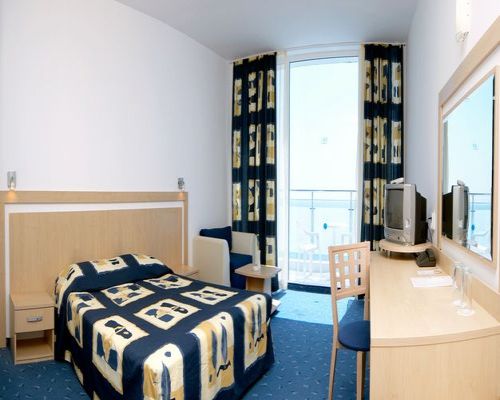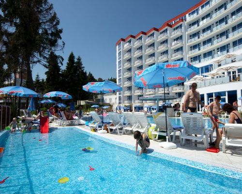 Інфраструктура готелю: Кількість поверхів - 8, Ліфт, Сейф на ресепшині (€), Відкритий басейн, Закритий басейн, Інтернет-клуб, Обмін валюти, Гараж, Парк, наявність зелені