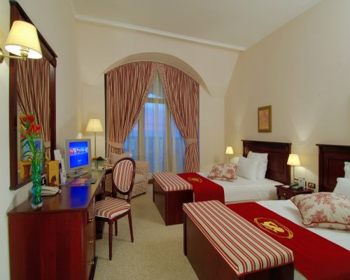 Розташований: 100 м від моря В готелі: дитячий майданчик, дитячий басейн, критий басейн, безкоштовні лежаки, парасольки, лобі-бар, ресторан, магазин, перукарня, інтернет, фітнес-центр, сауна, масаж, солярій, СПА, настільний теніс, більярд, медичний кабінет, номери для інвалідів, сейф В номері: кондиціонер, міні-бар, холодильник, сейф, балкон, телефон, телевізор, радіо, фен, санвузол. |