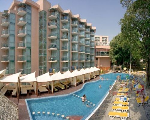 Пляжний, 1-я лінія (віддаленість від моря < Про готель: в В готелі: 2 корпуси, 331 номерів, 5 ліфтів. Хол, сейф за дод. плату на рецепції, лоббі-бар, ресторан з верандою, ресторан a la carte, магазини, перукарня, обмін валюти.Критий басейн з джакузі і відкритий в саду (лежаки і парасольки безкоштовно). Харчування: сніданок - шведський стіл. У номерах: супутникове TV, міні-бар, телефон, кондиціонер, балкон. Санвузол з душем / ванна кімната. Одномісні номери без балкона. В апартаментах на 2-4 людини: все те, що і в двомісних номерах, але з ванною і окремою спальнею на 3 і 4 людини. Для дітей: дитячий басейн, ігровий майданчик в саду готелю, водні гірки. За дод. плату - дитячий садок і догляд за дітьми. Спорт і розваги: медичний центр і бальнеоцентр. За дод. плату-фізіотерапія, масаж, фітнес-зал, сауна. Барбекю, жива музика та анімаційні програми. |