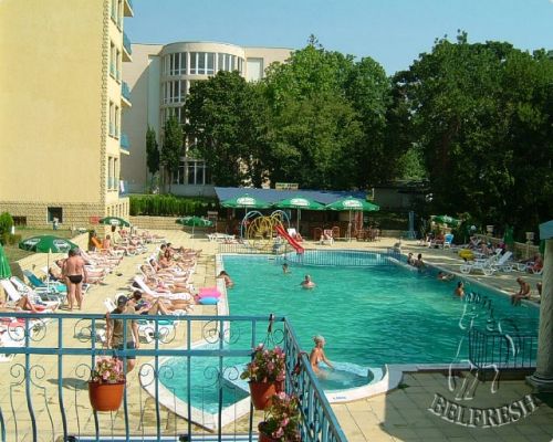 Пляжний, 2-а лінія (віддаленість від моря 200 - 1000 м) Про готель: Готель Дана Палас Парк знаходиться в курортному районі Золоті піски. В районі готелю розташовані магазини, ресторани, кафе, бари. По-домашньому затишний п'ятиповерховий готель, оточений садом, з добре обладнаними номерами, пропонує туристам якісний сервіс, тут створені всі умови для гарного відпочинку. Опис номерів:- Кондиціонер повітря;- Особиста ванна кімната і туалет;- Телефон;- Доступ в Інтернет;- Телевізор з супутниковими каналами;- Міні-бар;- 24-годинне обслуговування номерів. Інфраструктура готелю:- Камера схову;- Сейф;- Магазини;- Парковка. Розваги і спорт:- Відкритий басейн;- Сауна;- Масаж;- Дартс;- SPA-процедури. Для дітей:- Надання дитячих ліжечок. Пляж:- Піщаний пляж в 400 м. |