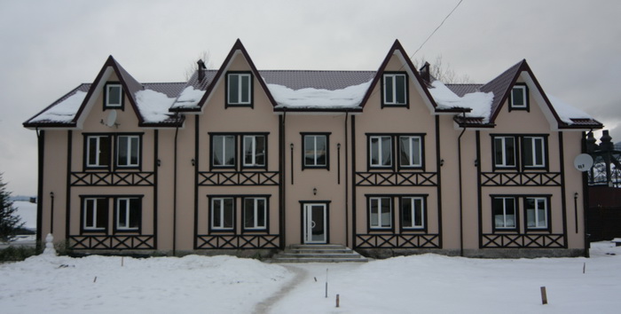 Расположение: в поселке Ворохта, 1 км от центра поселка, 1 км от подъемника, на высоте 790 м над уровнем моря. Недалеко есть лес, источник и река, в которой летом можно купаться. Удобный асфальтированный подъезд. Описание: два трехэтажных корпуса на 120 мест, рецепция, столовая на 40 человек, сауна с комнатой отдыха, игровая комната (мини-бильярд), настольный теннис. Отопление: автономное паровое, дополнительные обогреватели - по необходимости. Водоснабжение: холодная и горячая вода постоянно. Номера: 2-местный (8 номеров) - двуспальная кровать, TV-SAT, шкаф для одежды, столовая посуда, электрочайник, санузел (туалет, раковина, душ, фен). В некоторых номерах есть дополнительные места - раскладной уголок или диван. 3-местный (5 номеров) - односпальные кровати, TV-SAT, шкаф для одежды, столовая посуда, электрочайник, санузел (туалет, раковина, душ, фен). Есть возможность для дополнительных мест. 4-местный блочный (14 номеров) - двухкомнатный номер, в каждой комнате - двуспальная или 2 односпальные (можно сдвигать) кровати, TV-SAT, шкаф для одежды, электрочайник, набор столовой посуды, санузел на две комнаты (душ, умывальник, туалет , фен). Есть возможность для дополнительного места. 4-местный семейный (9 номеров) - двухкомнатный номер, спальня (2 односпальные кровати, TV-SAT, электрочайник, набор столовой посуды), гостиная (двуспальная кровать, TV-SAT, шкаф для одежды, электрочайник, набор столовой посуды), санузел (душ, умывальник, туалет, фен). Есть возможность для дополнительного места. Площадь номеров 25-30 м2. |