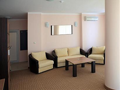 Розташування: на березі моря, в центральній частині курорту. В готелі: Ресторан, лоббі-бар, бар біля басейну, відкритий басейн. Види номерів:, двомісний, тримісний, чотиримісний, студіо, вид на море. Сніданки входять у вартість, дворазове харчування за додаткову плату. В номері: Кондиціонер, телефон, кабельне/ супутникове телебачення, міні-бар, фен. |