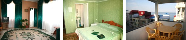 2-кімнатний номер "люкс" (2 номери), в кожному з яких балкон, холодильник, кондиціонер, набір посуду, кабельне ТБ, душова кабіна, туалет, умивальник, фен.