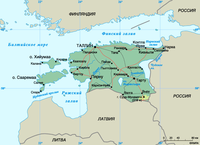 География Государство в северо-восточной части Европы, на южном берегу Финского залива Балтийского моря. Граничит с Латвией на юге и Россией на востоке. На севере омывается Финским заливом, на западе - Рижским заливом Балтийского моря. Территория страны включает более 1500 островов (10% территории Эстонии), крупнейшие из которых - Сааремаа, Хийумаа, Муху, Вормен, Найсаар, Аэгна, Прангли, Кихну, Рухну, Абрука и Вилсанди.
