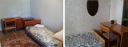 Одно (24), двомісні (25) номери другої категорії з частковими зручностями (умивальник, туалет - в номері, душ - в душовому павільйоні за додаткову плату). В номері: набір меблів, балкон, телевізор і холодильник - на поверсі. Вартість проживання 1 людини, за добу в гривнях: |