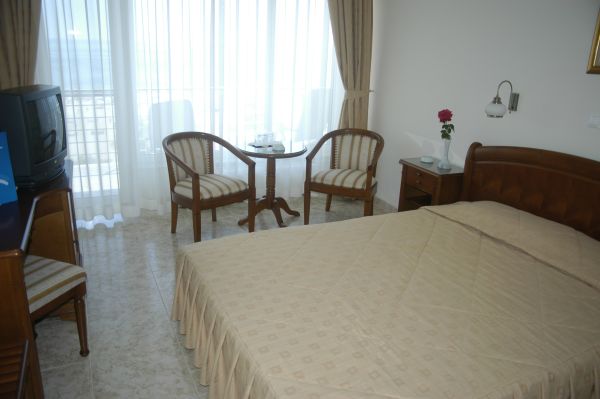 Местоположение 50 м. от моря, северная часть курорта. 6-этажное здание отеля имеет прямой выход на пляж, рассчитанный на 238 мест. Расположен между отелями Адмирал и Орфей. Часть номеров имеет вид на море, часть - на озеро. Полностью реновований в 2006 году. В отеле: 120 номеров (120 двухместных стандарт и люкс номеров, 6 апартаментов), ресторан на 250 мест, терраса, бар, 2 конференц-зала (160 и 80 мест), оборудованы видео проектором, флипчартом, доступом в Интернет и экраном, открытый бассейн с баром и детским отделением, парикмахерская, салон красоты, теннисная площадка, детская площадка, сейф, обмен валюты, стоянка, СПА центр, массаж, фитнес зал.