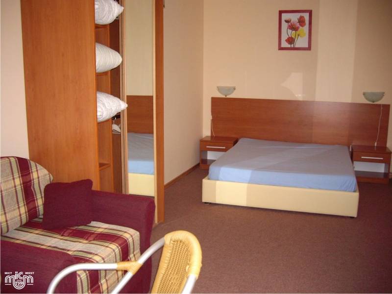 В номері: вигоди (ТУД), кондиціонер, телевізор, фен, міні-кухня (мікрохвильова піч, електрочайник, мінімальний набір посуду).