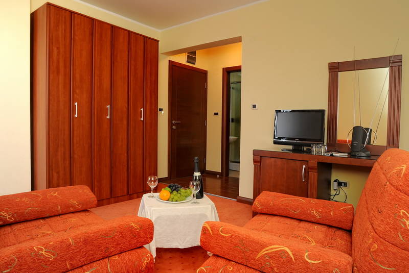 В номері: вигоди (ТУД), кондиціонер, телевізор, міні-бар, сейф, телефон, фен.