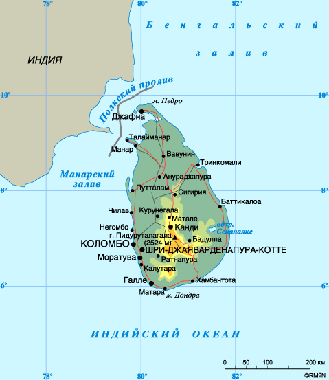 Республіка. Населення 18 млн. чоловік, з яких більше 500 тисяч чоловік проживає в столиці Шрі-Ланки - місті Коломбо. По етнічному складі - країна багатонаціональна, населення складається із сингалов, тамилов, бюргерів (нащадків португальців і голландців) і маврів (нащадків арабських торговців).